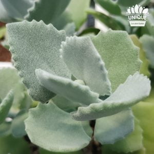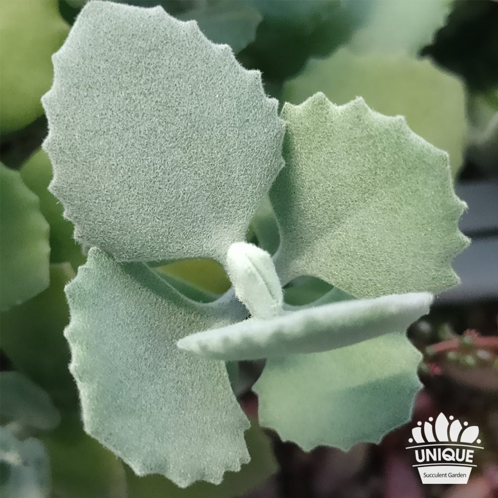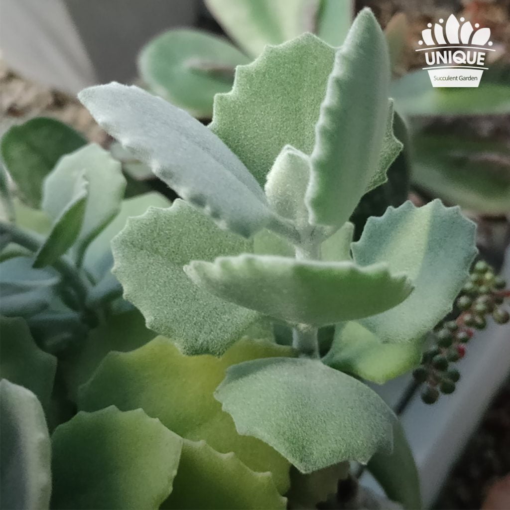 • 千兔耳,葉面有層軟軟的絨毛,葉緣鋸呈現齒狀,耐熱且對環境適應力很強。