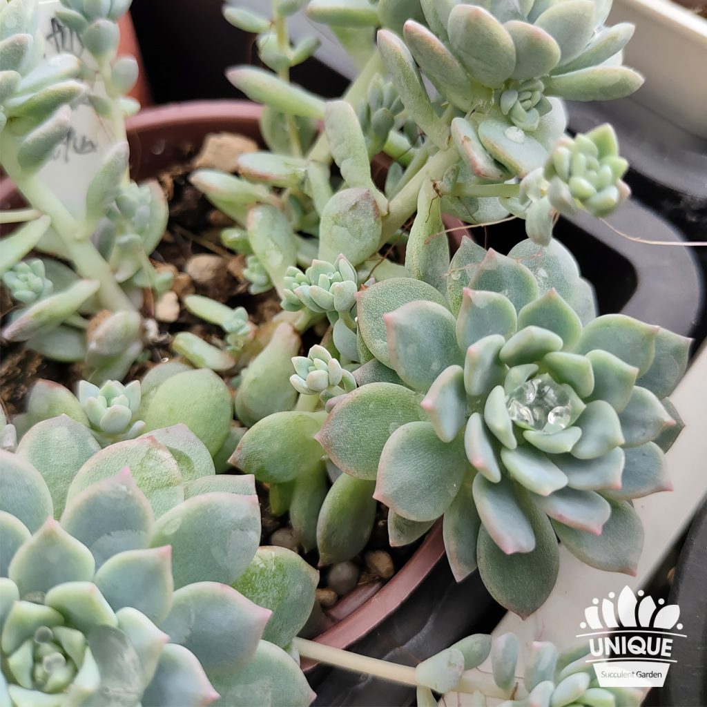 • 光照不足容易徒長,給予充足的陽光,葉片會呈粉藍色,葉緣會帶著粉紅色。