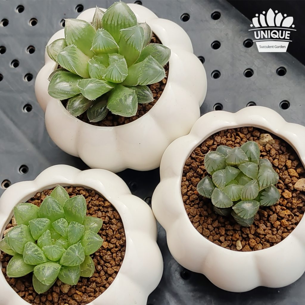 • 玉露,外型圓潤飽滿、葉窗晶瑩剔透,是多肉市場最受歡迎的阿福花科成員。
