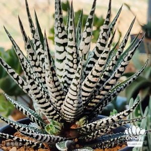 • 超級斑馬,是人工培育品種,葉片為細長的三角錐型,屬於十二卷屬硬葉系。
