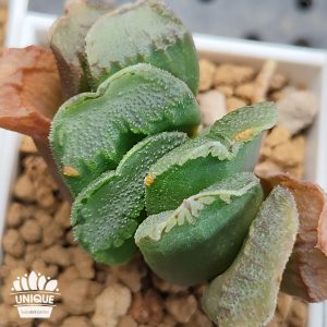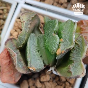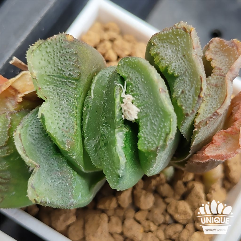 • 本賣場植株是錦靜鼓的無錦側芽,玉扇的扇葉卻像壽般螺旋生長,相當特別!