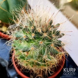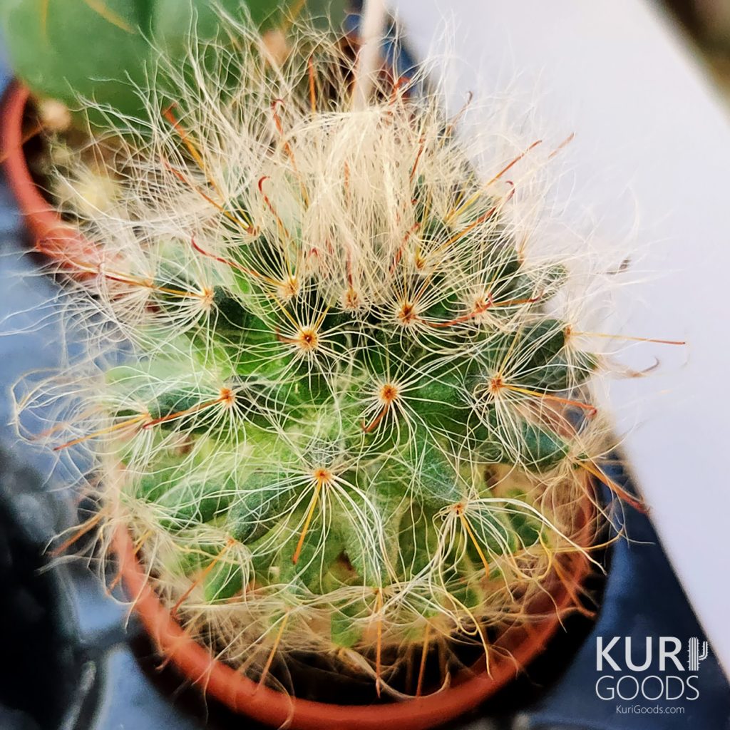 • 高砂歸類在乳突球屬,外表長滿白色毛球,帶著紅棕色長刺,又稱粉撲仙人掌。